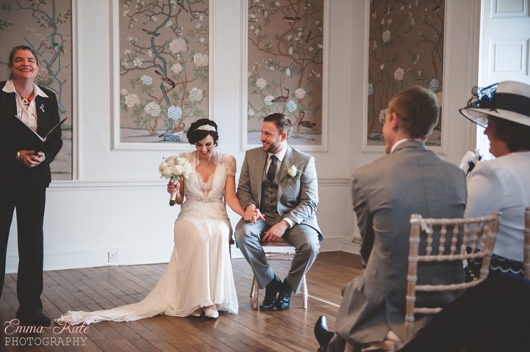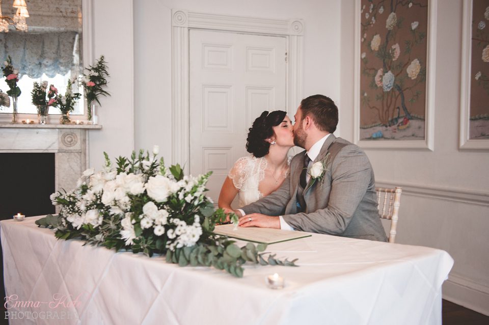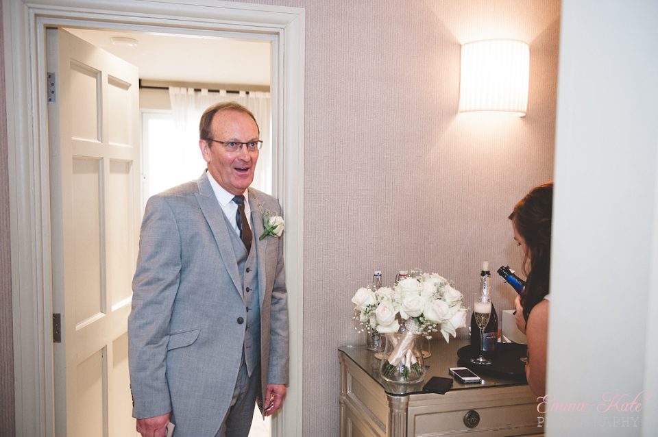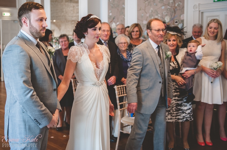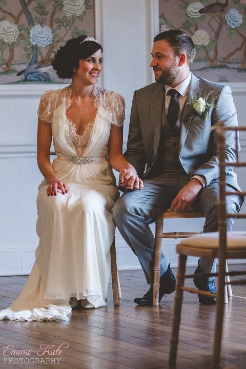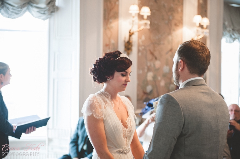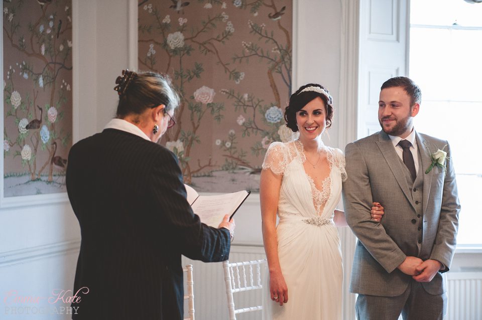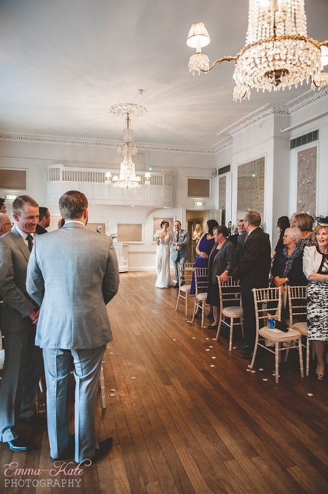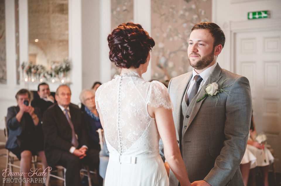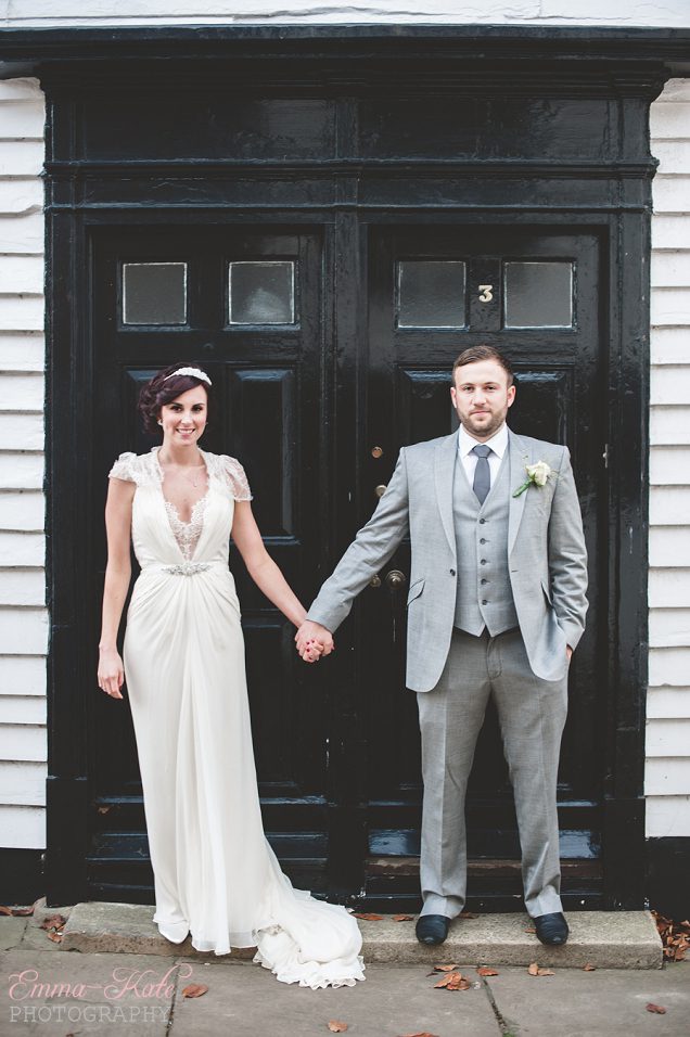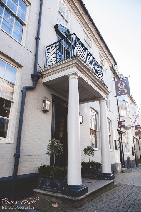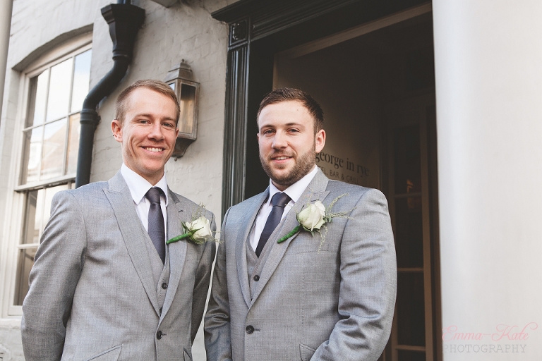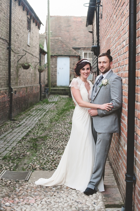 Oscar & Louise’s wedding was held in the gorgeous ballroom at The George in Rye, on a beautiful clear and sunny winter’s day. It’s an absolutely stunning room, with beautiful chandeliers, big Georgian windows and elegant wallpaper. The venue has a wonderfully romantic and intimate feel.